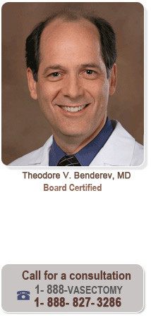 Site content copyright © 1999-2015 Theodore V. Benderev, M.D. All Rights Reserved. 1-888-VASECTOMY (888-827-3286)
